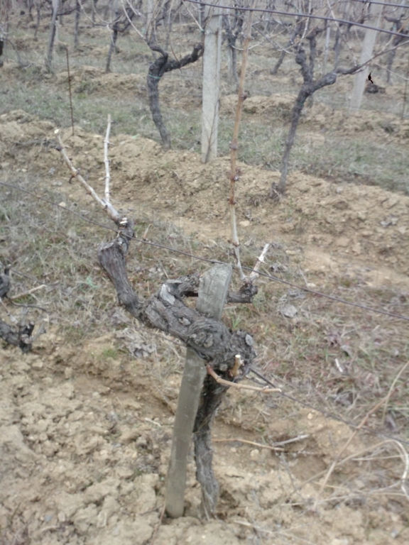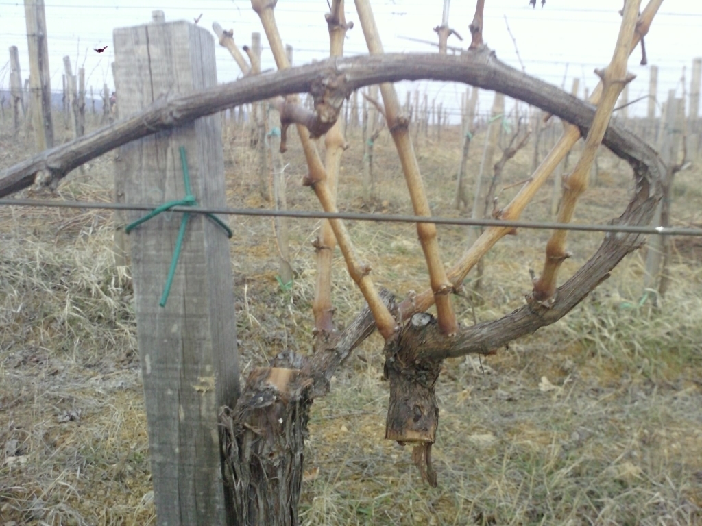 Orezivanje u 2012. smo počeli 25.02. Cabernet franc i cabernet sauvignon – klasično na jednokraki guyot (reznik i lucanj). Rozgve su zdrave s pravilnim internodijima. Prošlo je bez problema. Iako su sađeni istodobno cabernet sauvignon ima jače izraženo višegodišnje drvo.