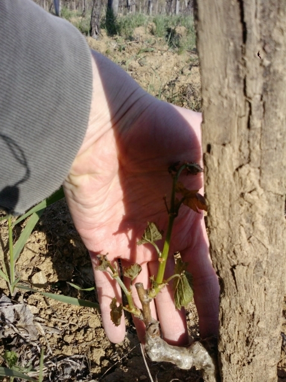 Određene štete su nastale na 600 trsova dvogodišnjeg cab franca i dijelom na zweigeltu (zanemarivo). Nadamo se da će se spavajući pupovi na cab francu sada aktivirati kako bi uzgojili barem prigojne reznike za nagodinu.