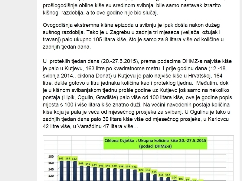 Mjesec svibanj bio je obilježen oborinama. Anticiklona se zadržala nad ovim prostorom tri tjedna. Temperature zraka bile su doista visoke (26C), uz izmjene su…